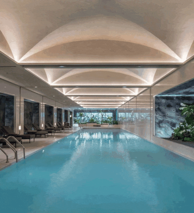 中興傲舍会所的打制一脉社区外部超高的美学,两侧采用弧形设想。